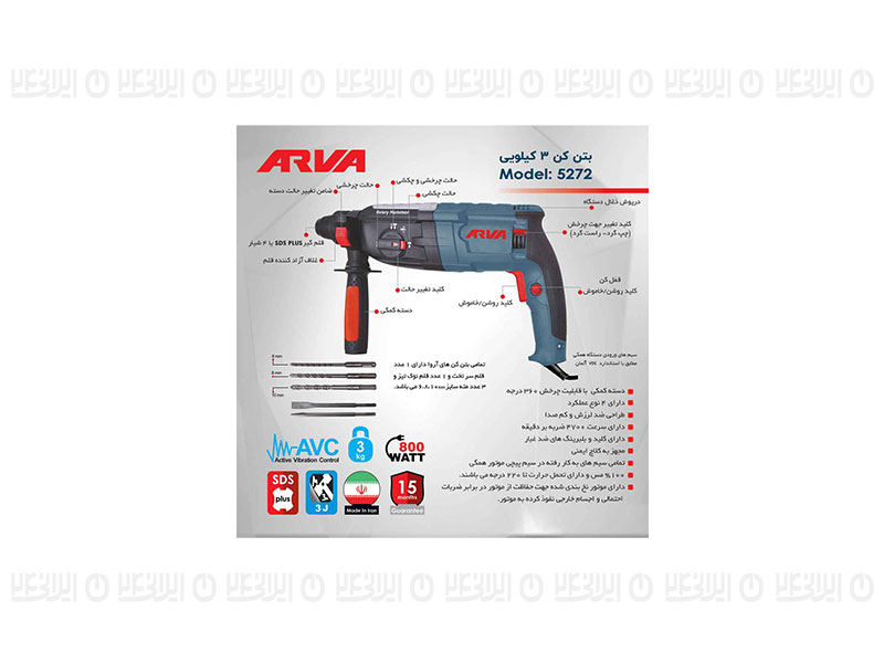 دریل بتن کن ۳ کیلویی ۸۰۰ وات آروا مدل ۵۲۷۲