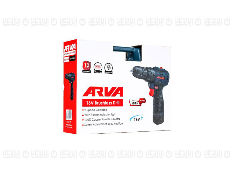 دریل شارژی براشلس ۱۶ ولت آروا مدل ۵۸۴۵