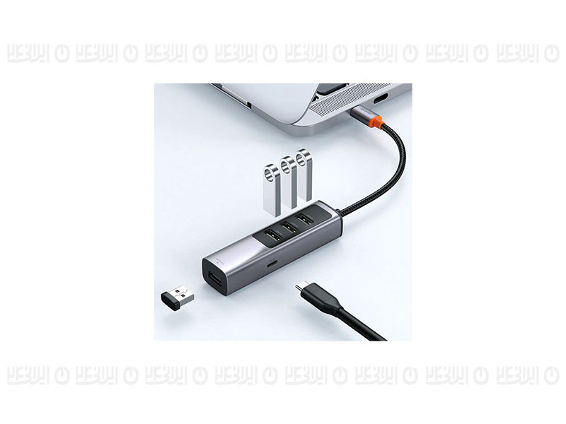 این هاب خاکستری از جنس آلیاژ آلومینیوم ساخته شده و با ابعاد 20*26*102 میلیمتر به راحتی قابل حمل است. همچنین کابلی به طول 15 سانتی متر به این تبدیل متصل شده است. وزن این تبدیل تقریباً 54 گرم بوده که حمل و نگهداری آن را راحت تر میکند. همچنین با چهار پورت USB3.0 و یک پورت تایپ سی (PD) به شما امکان اتصال به دستگاههای بیشتری را فراهم میکند.