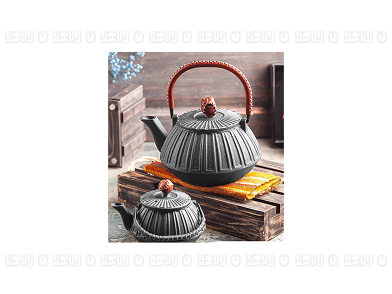 ست کتری و قوری چدن قابل استفاده روی اجاق گاز و زغال و آتش دارای ظرفیت 1600 سی سی برای کتری به همراه درب چدن و دستگیره چرم طبیعی دارای ظرفیت 700 سی سی برای قوری به همراه درب چدن و دستگیره چرم طبیعی