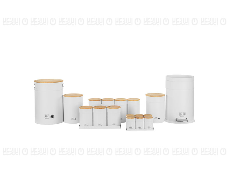 اقلام موجود در سرویس | سرویس ادویه 6 عدد+سینی مخصوص سرویس حبوبات 4 عدد سرویس پا سماوری 3 عدد+سینی مخصوص قند و شکر 2 عدد برنج 1 عدد سطل زباله 1 عدد |
